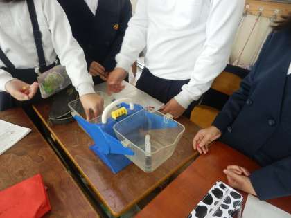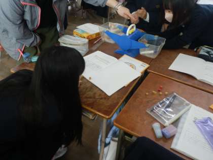 3年生の算数では、「ものの重さをはかろう」の学習をしました。三角定規や消しゴムなど、筆箱に入ってあるものを天秤にのせ、まずはつみ木いくつ分かで、どれが一番重たいかを比べました。最後に1円玉を使って重さをはかり、1円玉は1グラムという重さの単位を学びました。