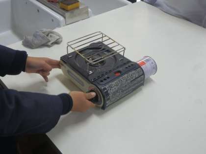 4年生の理科では、「実験用ガスコンロの正しい使い方」の学習を行いました。一人一人ガスボンベを取り付けたり、火をつけたり交代で確認しながら行いました。