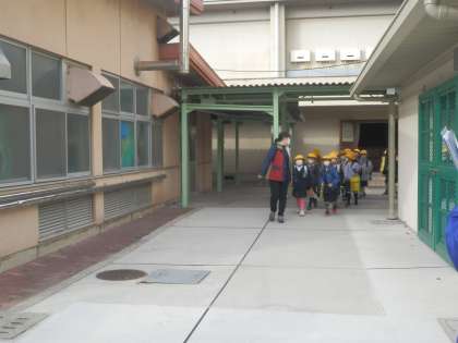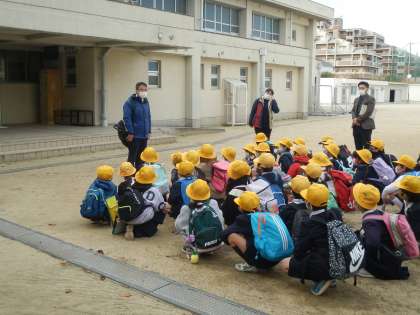 2年生の社会見学で、守口車庫まで今から出発します。学校生活の3つの約束「あ・ひ・る」等を校長先生や担任の先生と確認をして、元気に学校を出発しました。