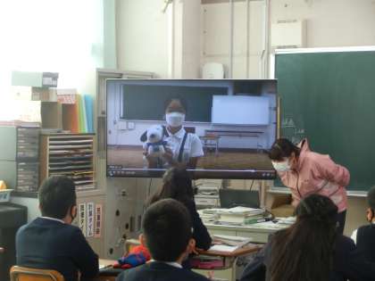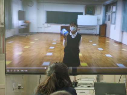 今日は、「クイズ 何を投げたでしょう!?」でした。ボールやスリッパなどいろいろなものが投げられるたびに、クラスは「〇〇や!」「えっ今の何?」など大盛り上がりでした。集会委員会さんありがとうございました。