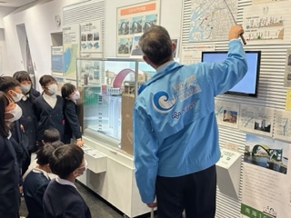 防潮堤、防潮扉、水門、排水機場など、多様な防潮施設の説明を聞きました。