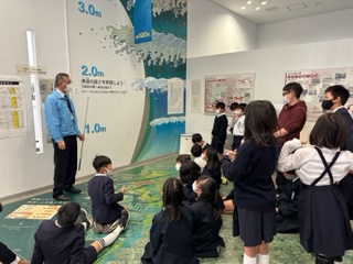 航空写真をみながら浸水想定区域を確認するとともに、大阪府を襲う津波の高さは3m以上という説明を聞きました。