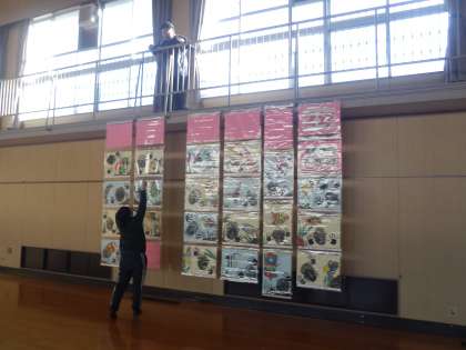 作品展に向けて、講堂の準備が本格的にスタートしました。一生懸命頑張って取り組んだ作品が講堂へ運ばれています。本日子どもたちが、「作品展のご案内」の手紙を持って帰っています。ご確認をお願いします。