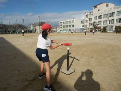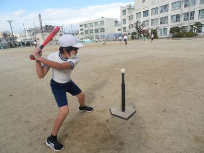 5年生は外でTボールを行っていました。寒さを吹っ飛ばせ!!