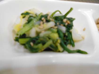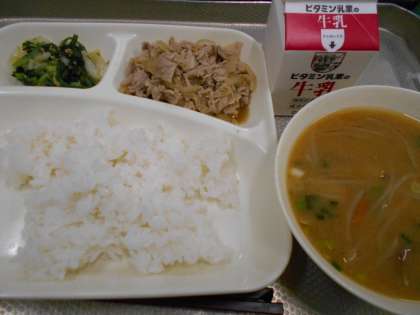 今日の給食は、豚肉のしょうが焼き、さつまいものみそ汁、きくなとはくさいのごまあえ、ごはん、牛乳です。地域で作られた野菜や果物などをその地域で食べたり使ったりすることを「地産地消」といいます。近い場所で作られ、運ばれるので新鮮なものが手に入ります。給食では、地産地消の一つとして、大阪で作られたきくなを使っています。