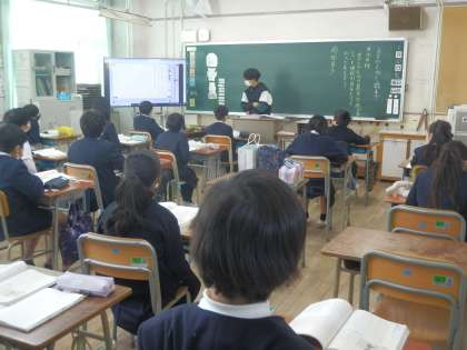 古文をえがく四季の学習で「枕草子」を音読し、内容を捉えることをしました。現在の表現と昔の書き表し方を比べながら学習を進めることができました。