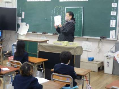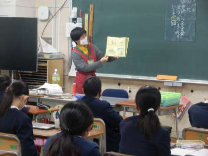 水曜日の朝は読書の時間です。今日は、図書館司書の方とけまQの方々が、絵本の読み聞かせに来てくれました。朝から素敵な絵本の世界に触れることができました。