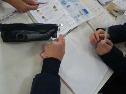 てこの働きのまとめをしていました。今日はピンセットやパンばさみを使って、支点や力点・作用点の働きを確かめました。作用点よりも力点のほうが支点の近くにあるため、力点での力は作用点で小さくなったことがわかりました。パンばさみやピンセットはそのように小さな力で使えるようになっている道具でした。