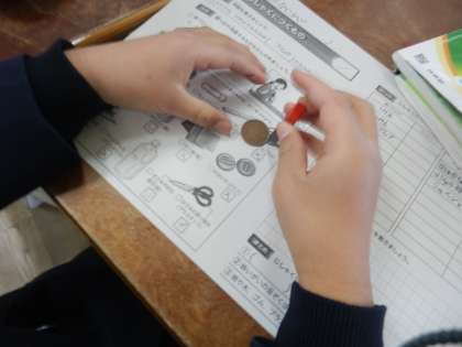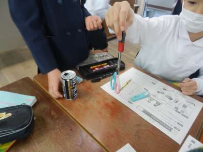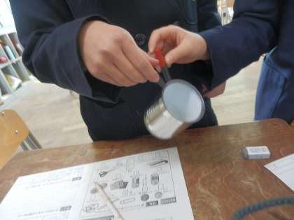磁石につくものとつかないものはどれかな!? 実際に試してみました。磁石につくものとつかないものには、何か決まりがあるのか考えました。「鉄でできているものはくっつく!」「ガラスや紙、プラスチックなどはつかないな」