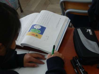 「数え方を生み出そう」の学習です。文章の構成を考え、序論、本論、結論に分けたり、本文中の難しい言葉を辞書で調べたりしました。