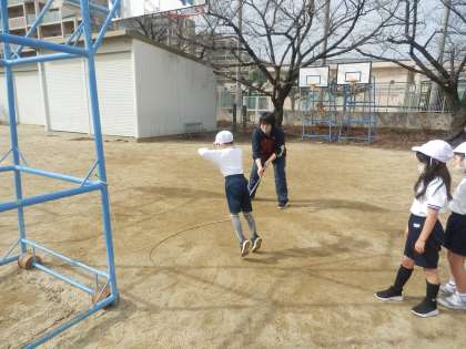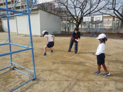 大縄跳びに挑戦!たくさん連続してとび越すことができました。