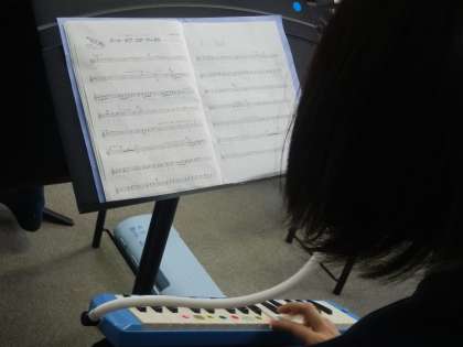 6年生が合奏の練習をしていました。「パート オブ ユア ワールド」という曲です。各パートに分かれて合わせるのは難しいですが一生懸命取り組んでいました。