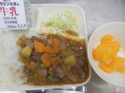 今日の給食は、ハヤシライス、キャベツのバジル風味サラダ、みかん(かんづめ)牛乳です。学習も給食も良い姿勢で食べましょう。 【姿勢を良くするためのポイント】 ・いすに深くすわる。・背もたれによりかからない。・机と体は、こぶし1つ分あける。・両足をゆかにつける。などなど。