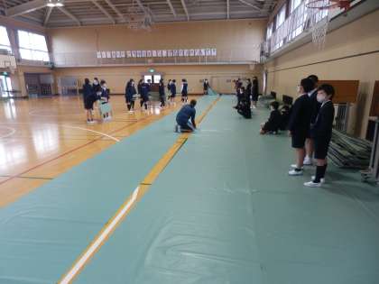 5年生が講堂を卒業式用に準備してくれました。とても協力的でテキパキと動いてくれました。