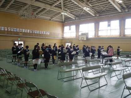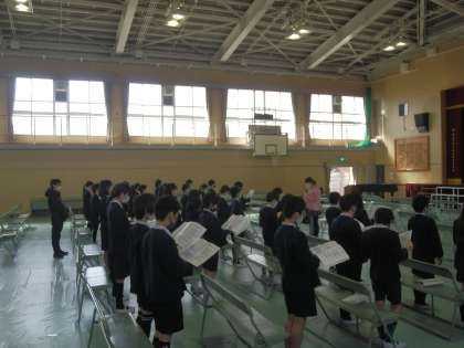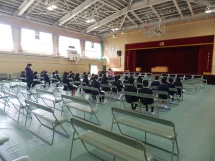 3年ぶりに卒業式に参加する5年生が講堂で練習開始です。