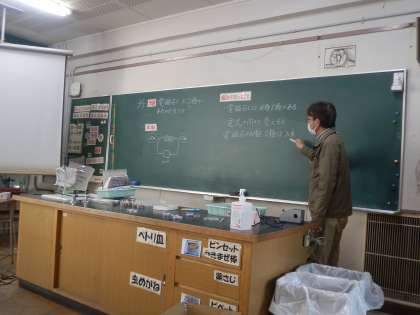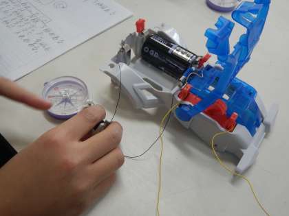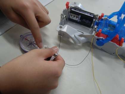 電磁石にN極S極はあるのだろうか?の学習です。電流の向きを変えて実験しました。