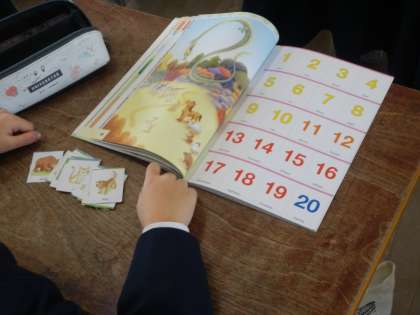 Who are you? I am a ( )の練習です。お話の中でいろいろな動物が出てきました。数字の学習も行いました。