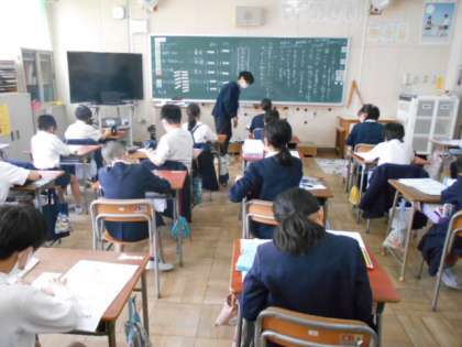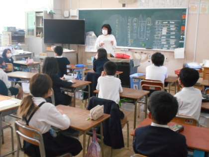 1組では4年生から始まる委員会をみんなで決めていました。2組では、一人ずつ学級目標を習字で書いたり、自己紹介カードを書いたりしました。