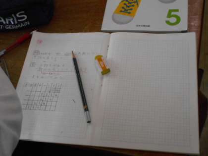 今日の問題は「234を1/10、1/100、1/1000にした数について調べましょう」という学習です。小数点が移動する様子を表を使って確認しました。