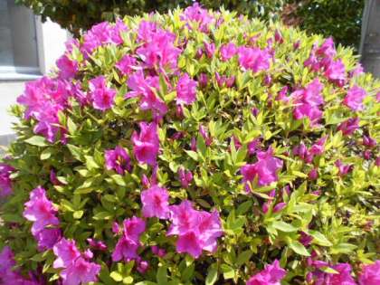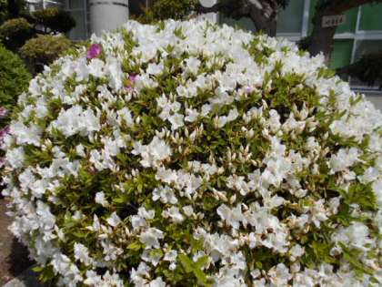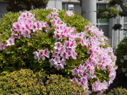 校庭のつつじの花がきれいに咲いています。いいにおいもします。