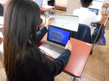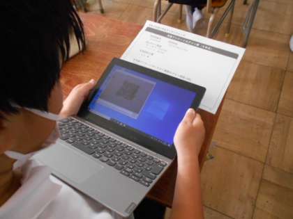 今年からすくすくウォッチの児童アンケートがオンラインで行うようになりました。一人一台パソコンを用いてQRコードを使って回答します。このQRコードを読み込むのがまた大変でしが、めげずに頑張りました!