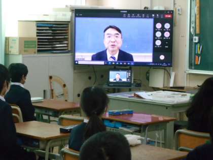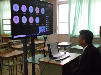 本日は雨のため、児童朝会はTeamsを使って行われました。校長先生のお話です。