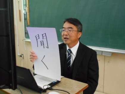 さて今日は、「アヒル」の「ヒ」人の話を聞く。についてお話をします。3年生以上の皆さんが持っている辞書を引くと、聞くには、「聞く」と「聴く」の2つの漢字が載っています。「聞く」の意味は、声や音を耳で感じて知る。活用として「聴く」は、理解しようとして自分から進んで注意して聞くときに使うとあります。