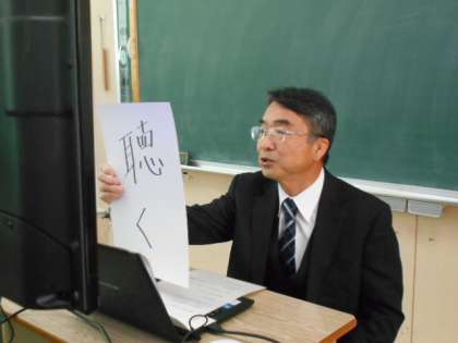 また、「聴く」の右側を見ると十四の心とも見えます。「素直な心で聴く」「平等な心で聴く」「広い心で聴く」「共感する心で聴く」「新しい心で聴く」「温かな心で聴く」「感謝する心で聴く」などの心を持って聴いてほしいと思います。