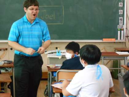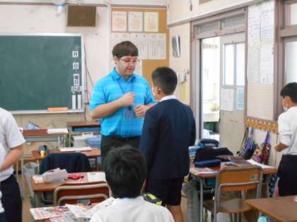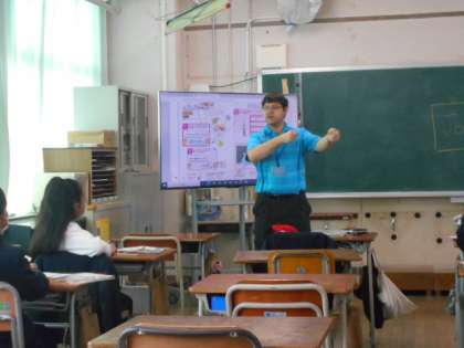 外国語の先生と自己紹介をして、名前のカードを交換したよ!