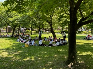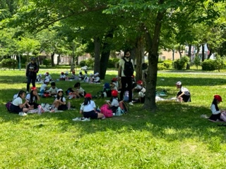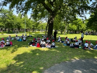 午前中の活動を終えて、お弁当の時間です。学年に戻って昼食です。