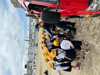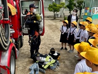 消防車の役割や働きについて、いろいろ教えてもらいました。