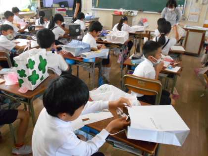 「袋の中の不思議な世界」 身の回りのいろいろなものを持ち寄って、袋の中に自分だけの世界を作ります。どんな作品ができるか、楽しみです。