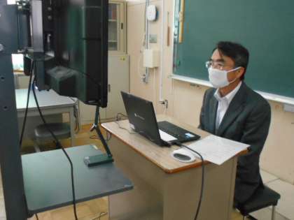 児童朝会 校長先生のお話です。