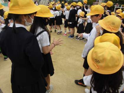 たてわり班対抗のじゃんけん列車を行いました。長〜い、長〜い、じゃんけん列車ができました。