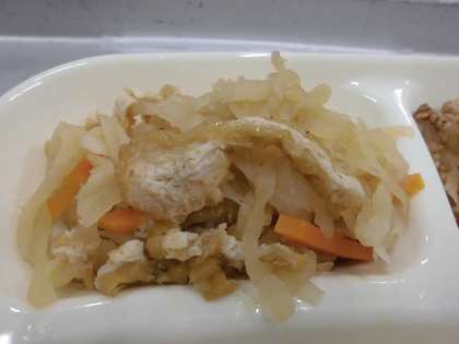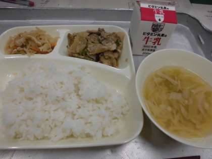 今日の給食は、豚肉のごまみそ焼き、すまし汁、切り干し大根のいため煮、ごはん、牛乳です。切り干し大根は、細く切った大根を干して作ります。干すことで、うまみや栄養価が増えます。