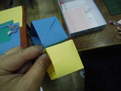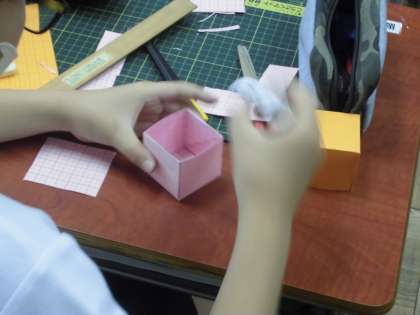 「箱を組み合わせてどんなものができるかな!?」の学習です。カッターを上手に使って箱を組み合わせていきます。