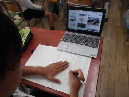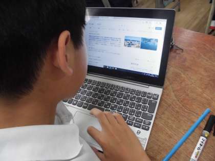 「環境問題について報告しよう」という学習です。どんな環境問題があるのか、1人1台パソコンを使って調べてみました。