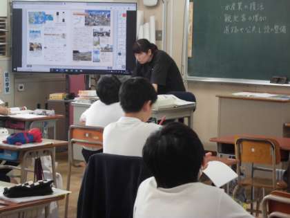 「これからに向けたまちづくり」の学習で、気仙沼市の取り組みについて学びました。