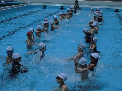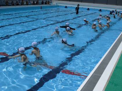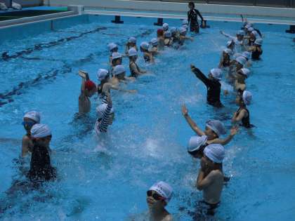 1組対2組 水のかけあい合戦!その後は、水の中を歩いたり走ったりしよう!です。