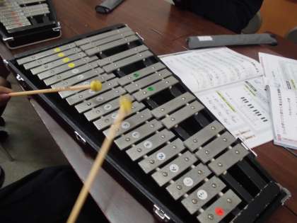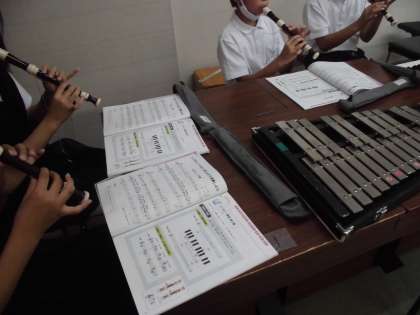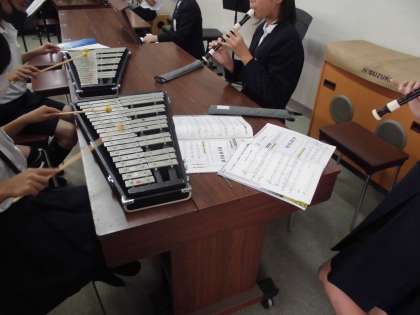 「♪マルせーりーノの歌」の合奏です。旋律や響きの変化をとらえて演奏しました。