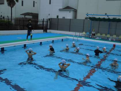 雨が心配でしたが、プールに入ることが出来ました。今日は、水慣れをした後、クロールを中心に練習をしました。だんだんと上手になってきました。