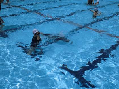 今日は、浮くことを中心に頑張りました。けのびやイルカジャンプができるようになったよ!