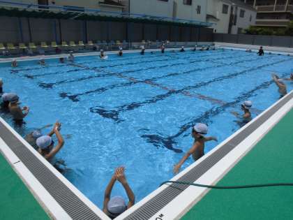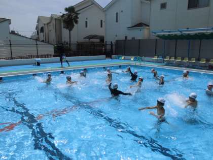 けのびやクロール、平泳ぎの手の練習をしました。一生懸命練習しました。