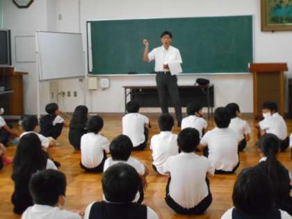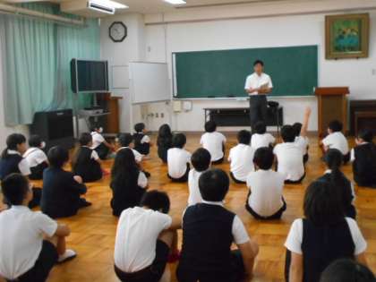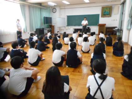 都島警察の方に来校していただき、6年生を対象に非行防止教室が行われました。自分自身が気のゆるみから犯罪を引き起こさないように(万引き等)する心構えや犯罪に巻き込まれないようにするためには、どのような行動をとらなければいけないのかについて教えていただきました。