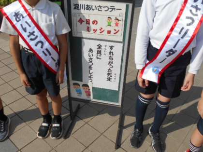 今日のあいさつミッションは、「すれちがった先生全員にあいさつしよう!」です。何人の先生にあいさつできたかな!?