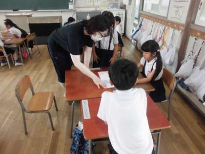 言われてうれしいことばや嫌な言葉について考えました。たくさんの「ふわふわ」や「ちくちく」言葉が子どもたちから出てきました。それを全部付箋に書いてグループで「ふわふわ」「ちくちく」に分けました。言われてうれしいことばがいっぱい見つかりました。どんどん使ってほしいと思います。