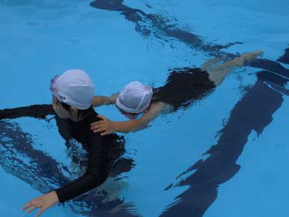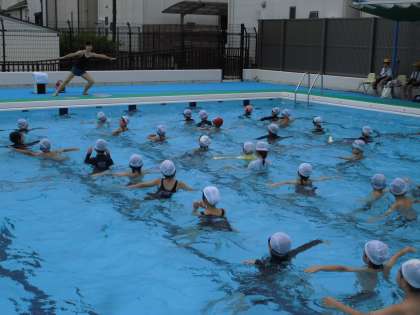 みんなの願いが通じたのか、雨も降らず、時折日差しもさしてきました。今日も元気にプールを頑張りました。けのびがとても上手になりました。