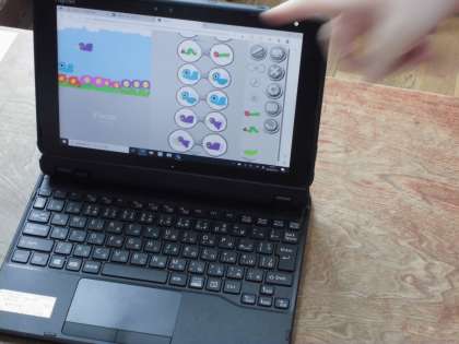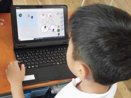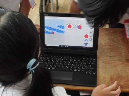 1人1台パソコンを使って今まで習ったプログラミングの技術をまとめて、一つの作品作りに取り組みました。鳥が滑らかに右から左に動くのが印象的でした。パソコンの扱いも上手になっています。