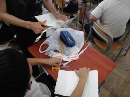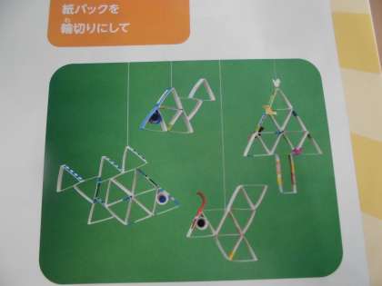 「紙パックを輪切りにして…」紙パックを細く切ってき、↓のような作品を作ります。どんな作品ができるか楽しみです。
