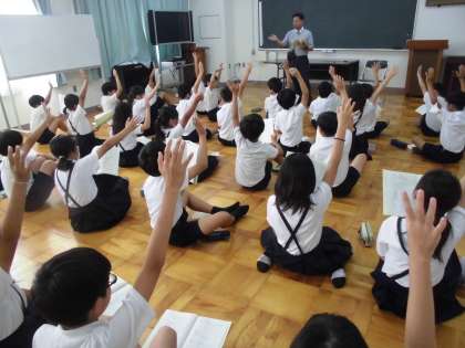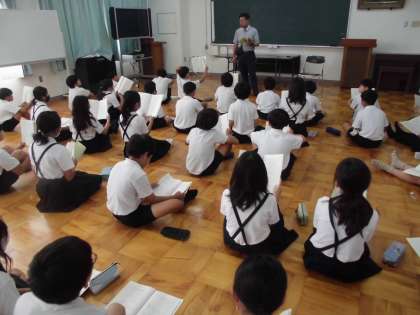 林間学習にむけて、5年生全員に説明会を行いました。はじめての全員のお泊りです。みんな真剣に先生の話に耳を傾けていました。
